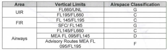 Nota: La ruta ATS dentro de un espacio aéreo de clasificación superior (A, B, C o D) adoptará la clasificación del espacio aéreo mencionado.