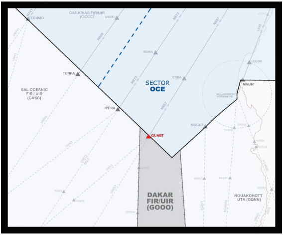 El tráfico random sobre el punto común GUNET deberá ser coordinado entre Dakar, Sal y Canarias FIRs.