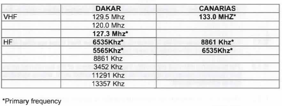 A lo largo de la interfaz entre Dakar Terrestre y Canarias FIR, la coordinación se realizará de la siguiente manera: