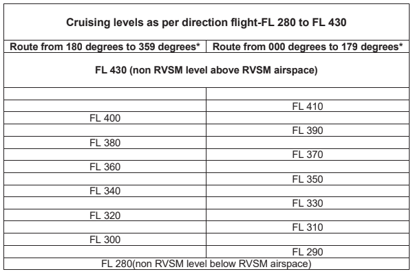 La siguiente tabla contiene los niveles de vuelo RVSM aplicables en el espacio aéreo RVSM de la Región AFI.