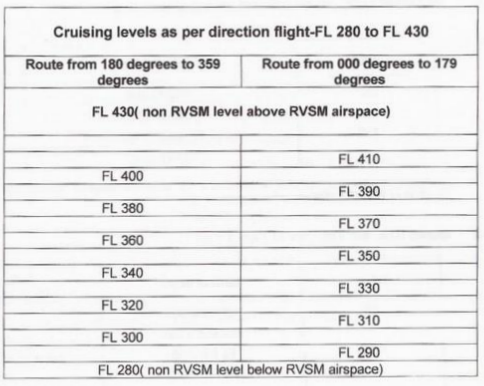 La siguiente tabla contiene los niveles de vuelo RVSM aplicables en el espacio aéreo RVSM de la Región AFI.