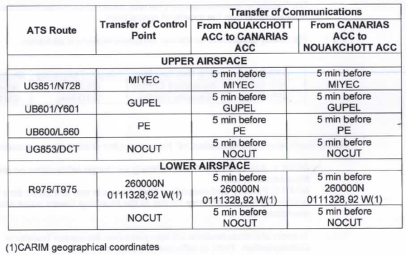 La clasificación del espacio aéreo OACI correspondiente al área de responsabilidad del ACC de Canarias, a lo largo del límite común entre el área de responsabilidad del ACC de Canarias y el ACC de Nouakchott, se describe en el Anexo B de este documento.