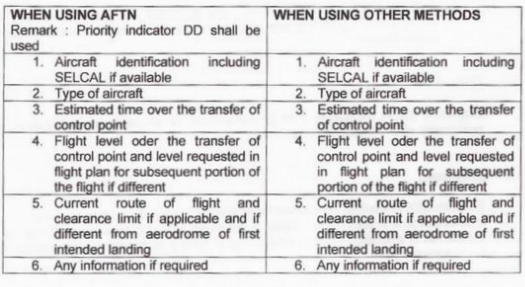 - Si se requiere la transferencia de control en puntos distintos a los especificados anteriormente, esto deberá coordinarse individualmente para cada vuelo.