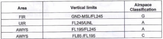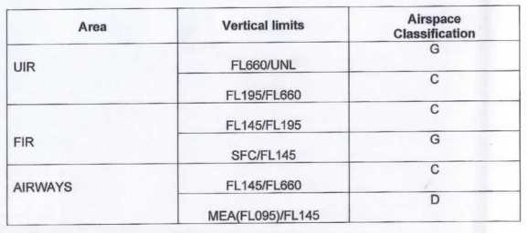 Nota: La ruta ATS dentro de un espacio aéreo de clasificación superior (A, B, C o D) adoptará la clasificación del espacio aéreo mencionado.