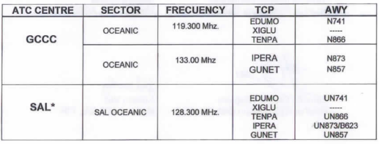 NOTA: Para evitar malentendidos con este tema, si Sal ACC alguna vez establece conexión CPDLC con cualquiera de estos tráficos, el piloto siempre será informado por Sal de que la responsabilidad del control corresponde a Dakar.
