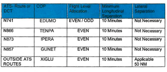 - Cada FIR será responsable de manejar la separación en sus propios espacios aéreos y no en el corredor EUR/SAM entero.