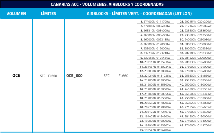 La clasificación del espacio aéreo está recogida en el AIP-España ENR 1.4. Los TMA bajo su jurisdicción se encuentran en el AIP-España ENR 2.1. Los CTR y ATZ de aeródromos bajo la jurisdicción de la dependencia o a los que presta servicio se encuentran dentro del AD-2 (GCFV, GCGM, GCHI, GCLA, GCLP, GCRR, GCTS, GCXO, GSAI, EL AAIUN, GSVO VILLACISNEROS- La información de estos dos campos del Sahara no está actualizada en el AIP).