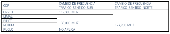 - NOTA: por razones de seguridad y para asegurar el principio operacional, se utilizará DATA LINK para transferir aeronaves a colaterales externos.