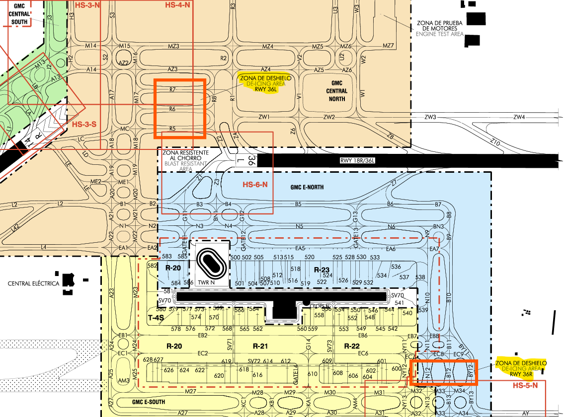 LEMD_GND (Plataforma) -> Tráficos en STAND del 538 al 581 y del 600 al 628.