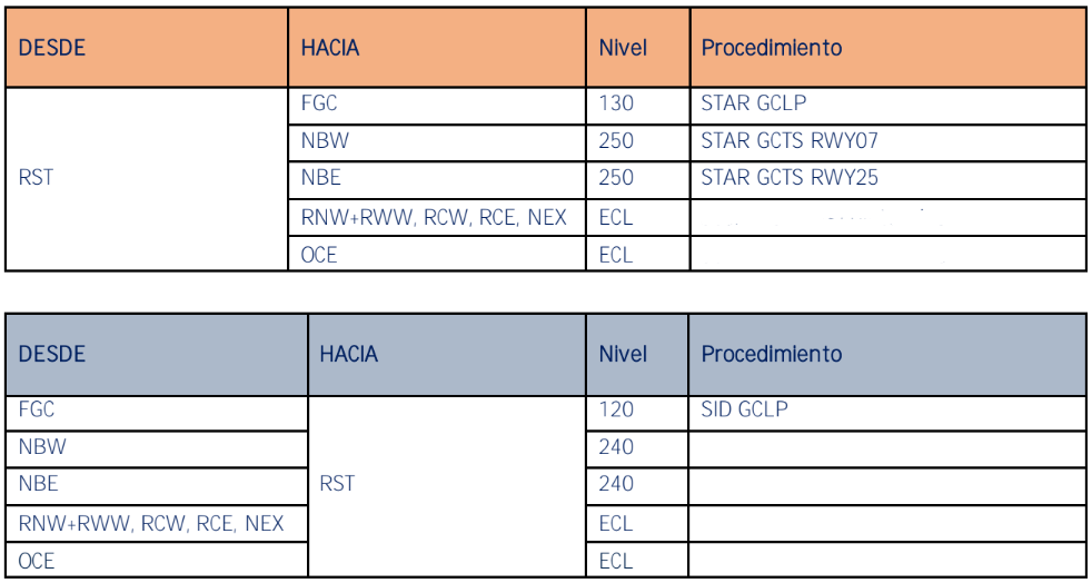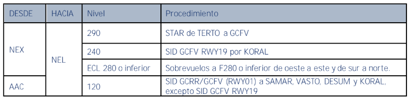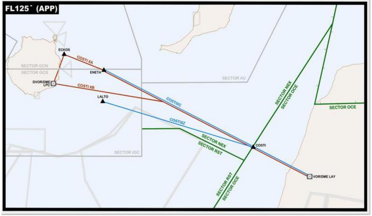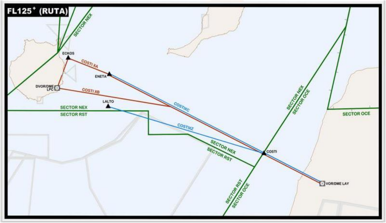 - DEP GCLP vía COSTI: Gran Canaria Aproximación a NEX: TFL = FL110.