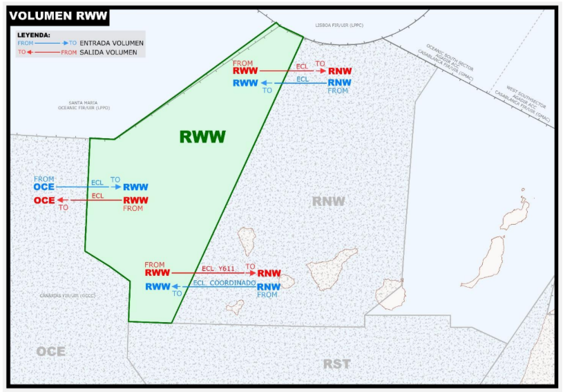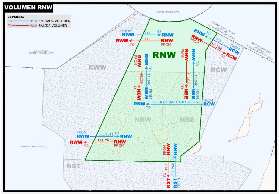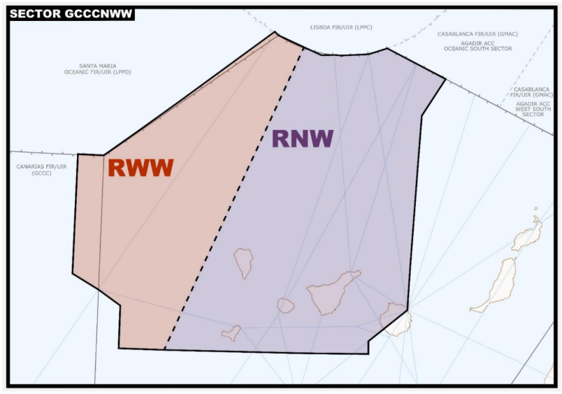 Sector oeste de control del ACC de Canarias. Este sector a parte de gestionar las rutas que discurren por él, funcionará cómo alimentador para llegadas por ORTIS y KONBA.