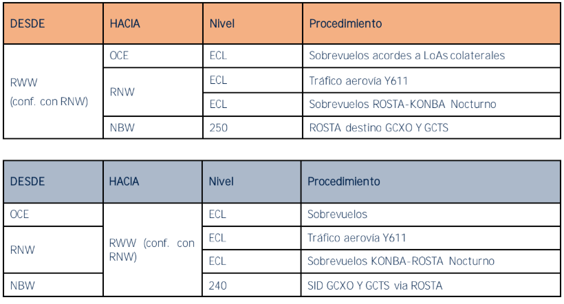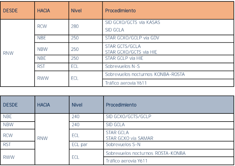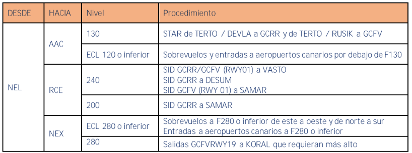 - Aproximación Gran Canaria subirá el tráfico a FL110 o nivel impar coordinado con NEX.