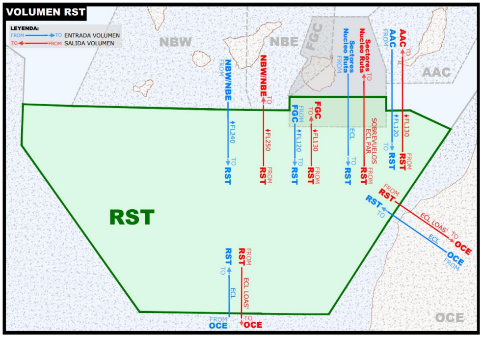 Sector noreste de control del ACC de Canarias. Este sector a parte de gestionar las rutas que discurren por él, funcionará cómo alimentador para llegadas a través de RUSIK.