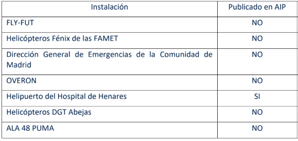 Los aeródromos y helipuertos de uso público (por razón de las operaciones aeronáuticas que se pueden realizar en ellos, con independencia de que la infraestruactura esté abierta a todos lo susuarios o sea de uso privado) constan en AIP-España AD2 y AD3, respectivamente. En AD1.3 se listan los de uso restringido.
