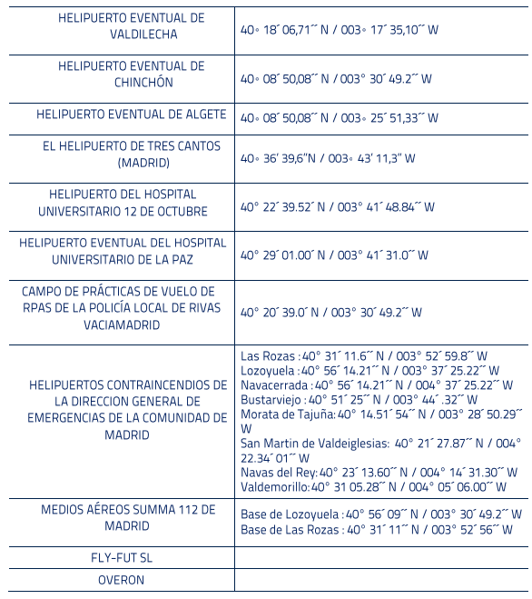 Además, se identifican los siguientes operadores con afectación en la operativa de la dependencia, que no constan publicadas en AIP: