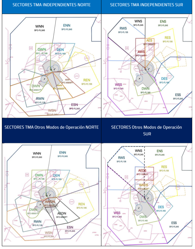 El número de sectores y las diferentes posibilidades de apertura dependen de la demanda de tráfico, así como del número de controladores de servicio.