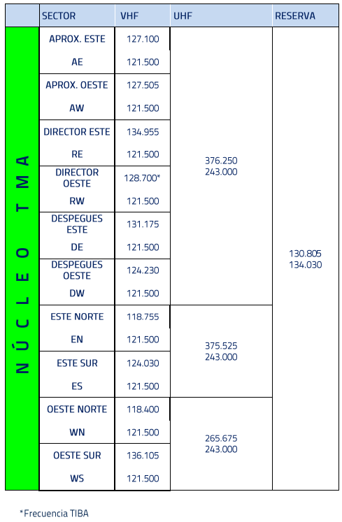 Es importante consultar la información contenida en Briefing de Madrid Aproximación ya que allí estarán publicadas las frecuencias en uso, y que puedan estar sujetas a cambio debido a requerimientos técnicos u operativos.