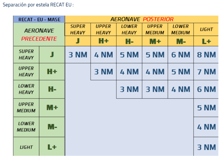 ⁴. Separación mínima aplicable: excepto que sea aplicable uan separación mínima superior por estela d eacuerdo con AMC6 ATS.TR.220.
