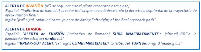 RECOMENDACIÓN: en caso de Alerta de evasión, se recomienda utilizar el término "BREAK OUT ALERT" en las comunicaciones en español.