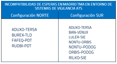 ESPERAS INCOMPATIBLES EN MADRID TMA EN ENTORNO DE SISTEMAS DE VIGILANCIA ATS:
