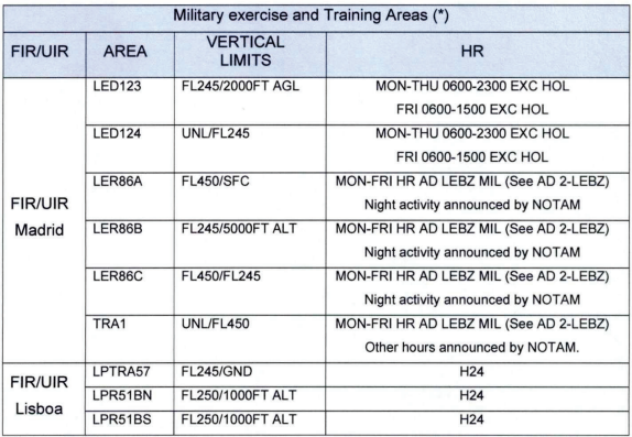 - Detalles de las regulaciones nacionales de Portugal que difieren de los procedimientos OACI y que deben aplicarse dentro del área por Lisboa ACC:
