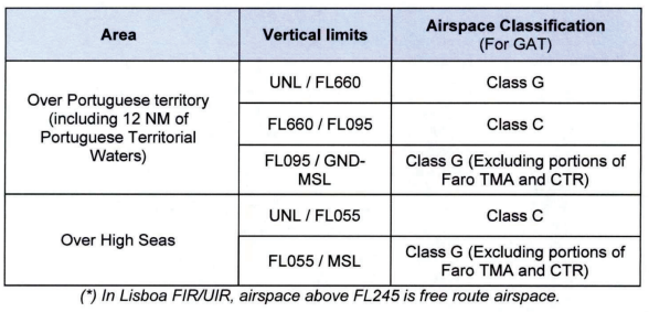 La clasificación del espacio aéreo OACI correspondiente al área de responsabilidad del FIR de Lisboa, a lo largo del límite común entre el área de responsabilidad del ACC de Lisboa y el ACC de Sevilla, se describe en el Anexo B de este documento.