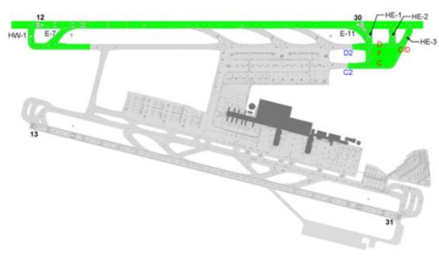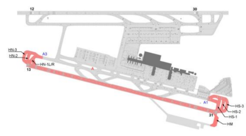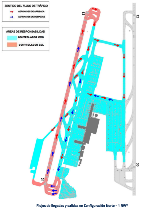 Aunque la pista 12/30 se utiliza habitualmente en configuración de dos pistas, es necesario contemplar la posibilidad de utilizarla en configuración de pista única (ARR 12 / DEP 30) como contingencia de la pista 13/31 para, entre otros, los siguientes supuestos: