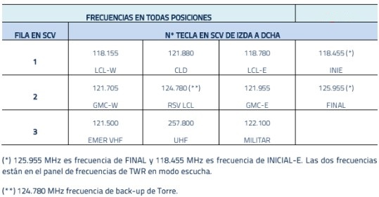 - Dos o más frecuencias operativas en una misma posición de control (frecuencias pareadas):